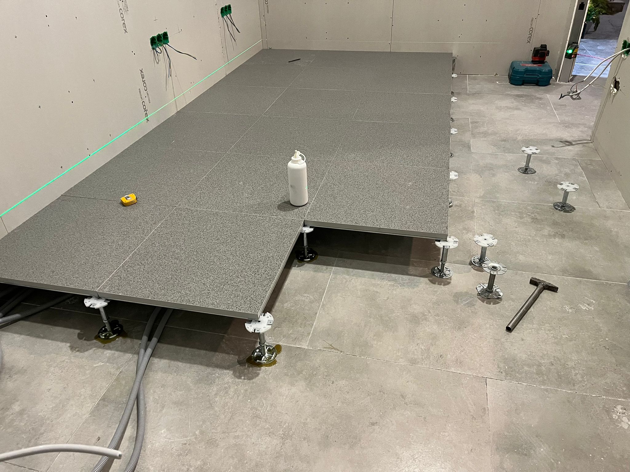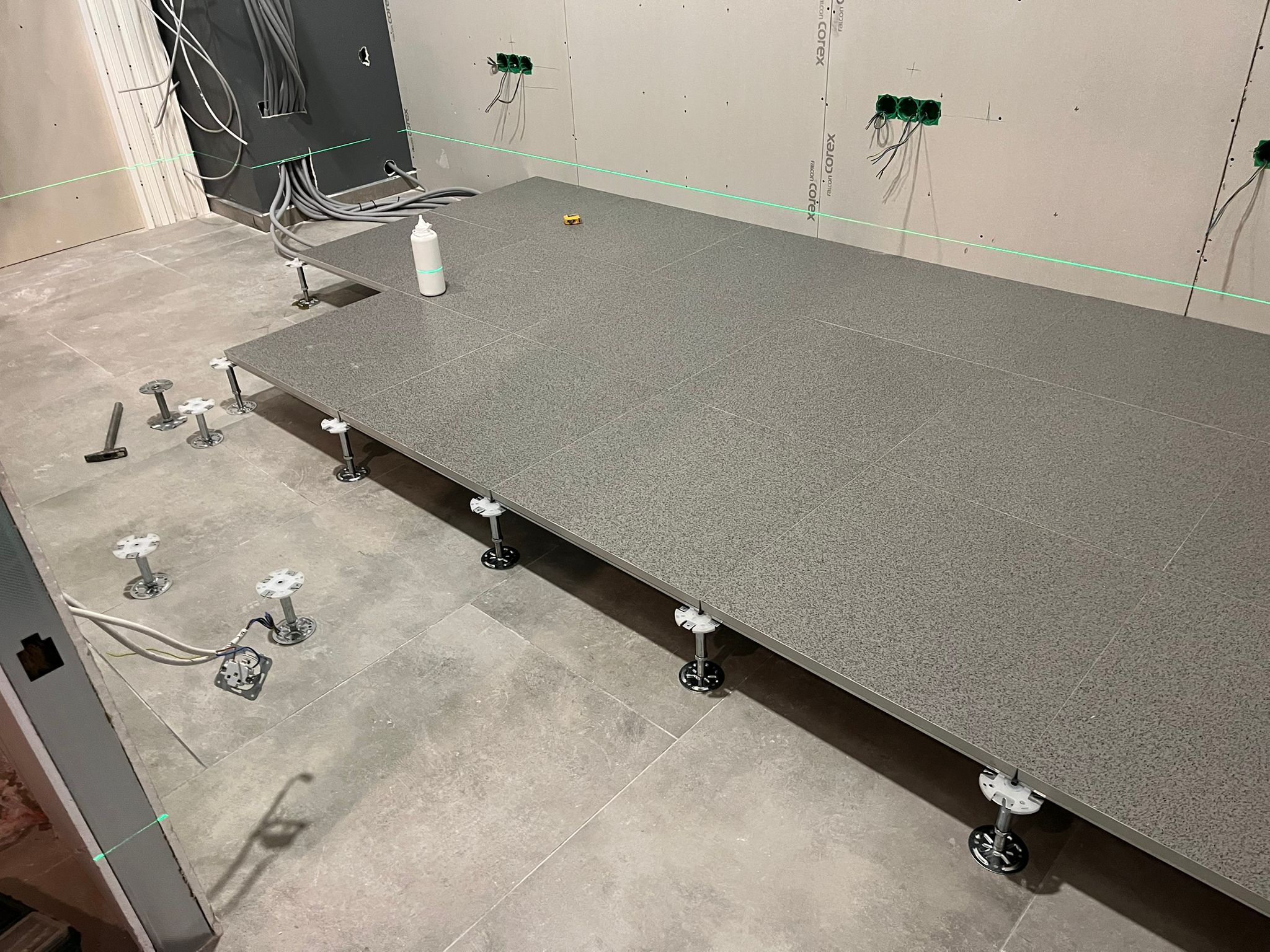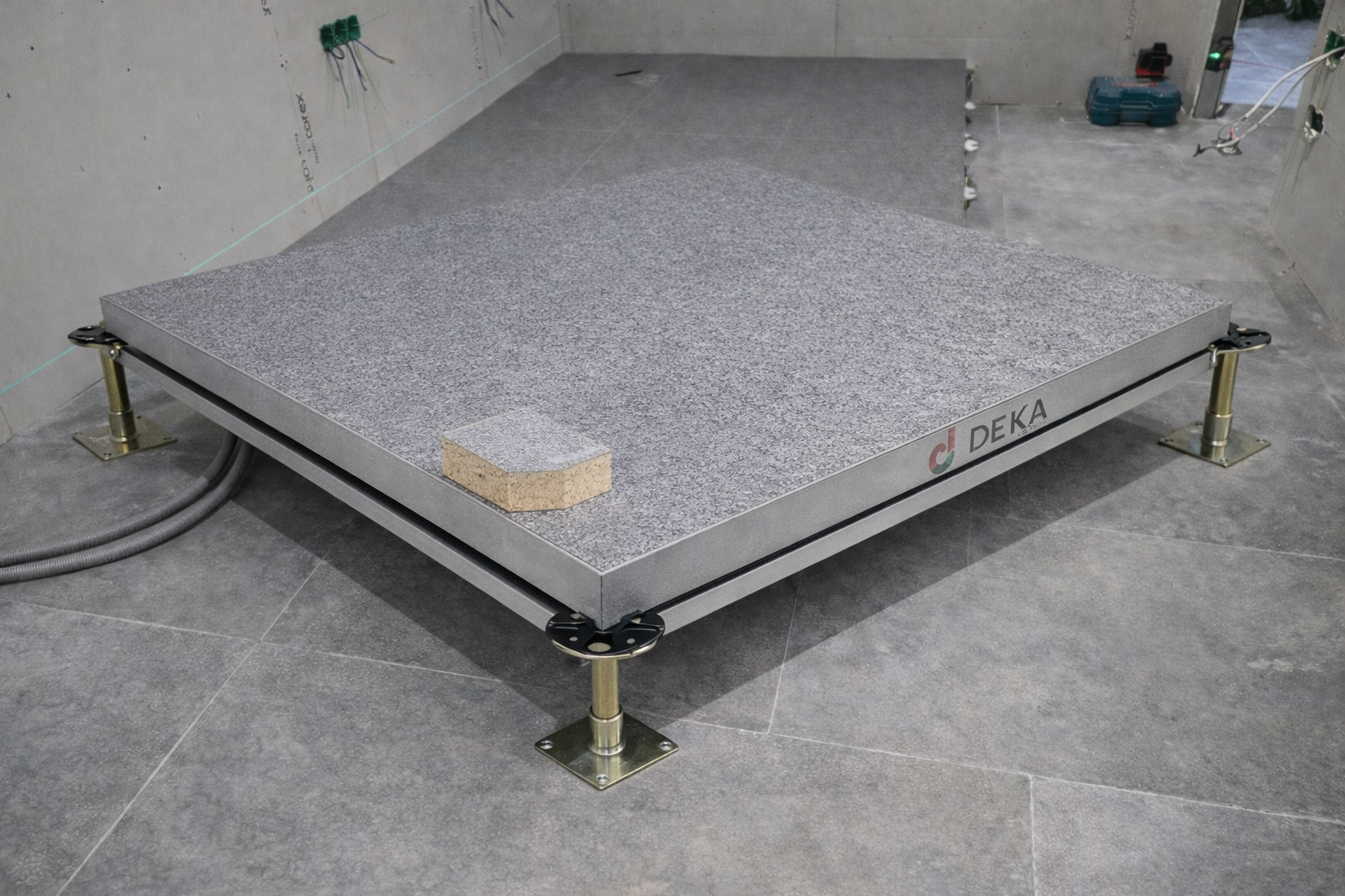 Yükseltilmiş döşeme sistemi sayesinde beton zemin ile kullanım yüzeyi arasında teknik bir plenum alan oluşturulur. Bu alan hem kablo yönetimini kolaylaştırır hem de soğutma performansını artırır.